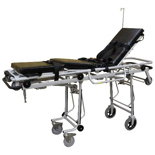 - Носилки изготовлены из алюминиевого сплава, секционная панель носилок обеспечивает несколько фиксированных положений пациента: «сидя», «полулежа», «лежа».