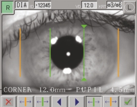 - Возможность одновременного замера диаметров роговицы и зрачка. Полученные результаты можно вывести на экран, записать в памяти прибора или распечатать на принтере в режиме реального времени.
