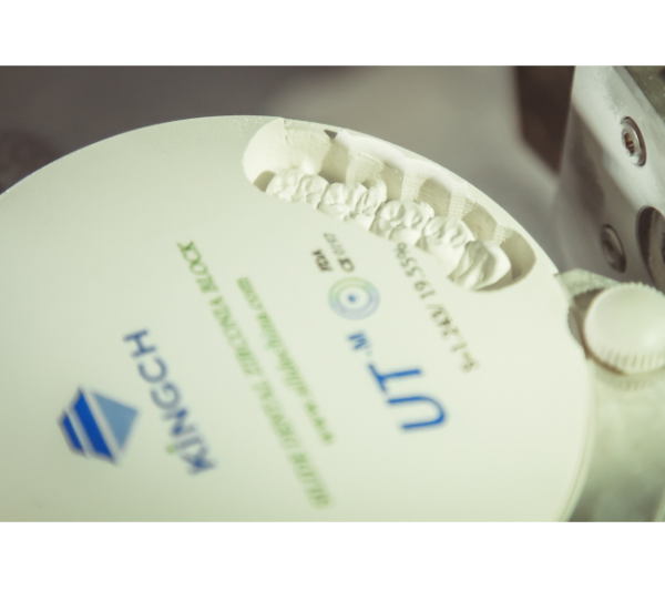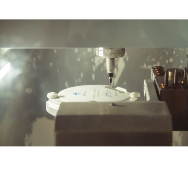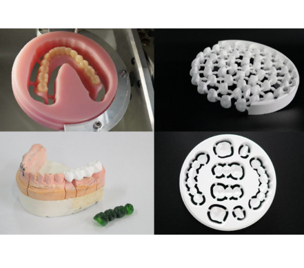 Фреза перемещается по пяти осям, что однозначно говорит о том, сколь сложные и многочисленные операции установка может исполнять. Управляется фреза компьютером, что исключает вероятность ошибки. Устройство оснащено С-образным зажимом, предназначенным специально для диска из диоксида циркония.