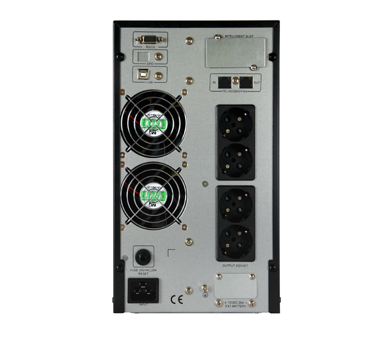 ИБП UPO-2000T-72-E относится к классу ИБП с двойным преобразованием, работа которых происходит по следующему принципу. На входе ИБП переменное напряжение (AC) на первом этапе преобразуется в постоянное напряжение (DC). Далее инвертор ИБП преобразует постоянное напряжение в переменное. Параметры переменного напряжения находятся под постоянным процессорным контролем и поддерживаются с высокой точностью. Этим достигается эффект независимости выходного напряжения ИБП от внешней электросети и обеспечивается высокая степень защиты критичной нагрузки.