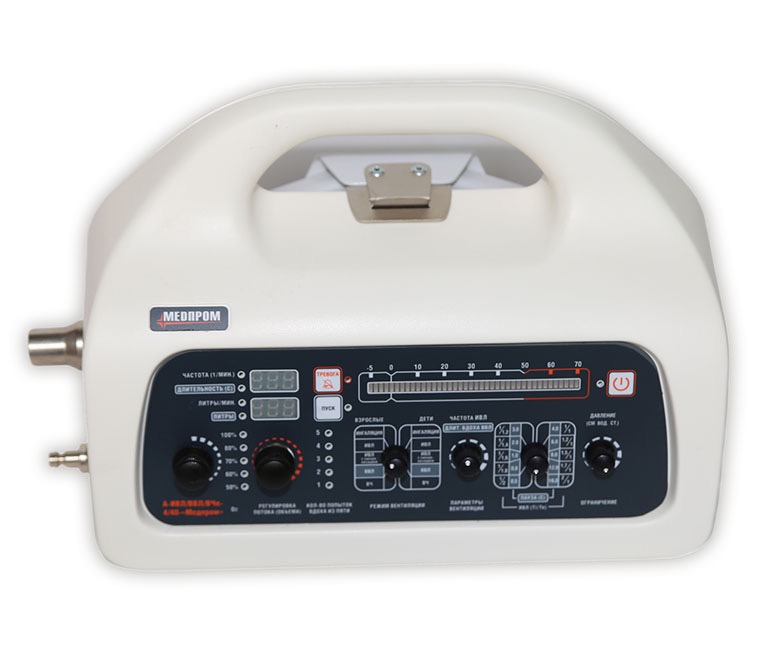 Аппарат А-ИВЛ/ВВЛ/ВЧп-4/40-«Медпром» предназначен для проведения управляемых по объёму с ограничением по давлению следующих режимов вентиляции лёгких кислородом и кислородно-воздушной смесью: