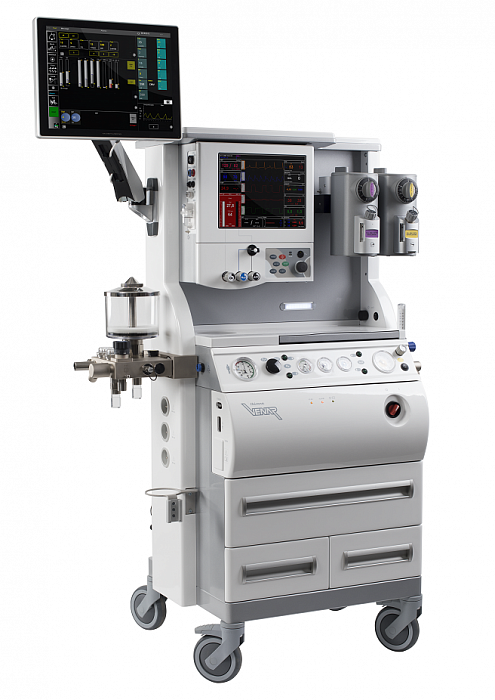 Единый интегрированный монитор Anemon, одновременно отражает показания гемодинамики, полного газоанализа и электронного ротаметра. Обеспечена защита от дефибрилляции и электрохирургического инструмента.Дисплей: Цветной TFT экран, размером 12,1 дюйма. Одновременно на дисплее отображается не менее 5 графиков и более 10 окон для отображения различных параметров. Возможность просматривать минитренды к каждому графику.