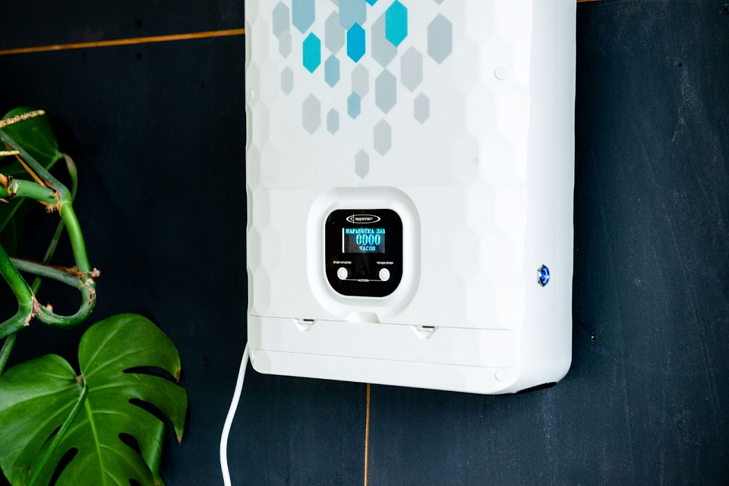 - Обеззараживание воздуха происходит в ходе принудительной циркуляции воздушного потока через металлический корпус, где на поток воздействуют три УФ-бактерицидные лампы мощностью 15 Вт каждая.