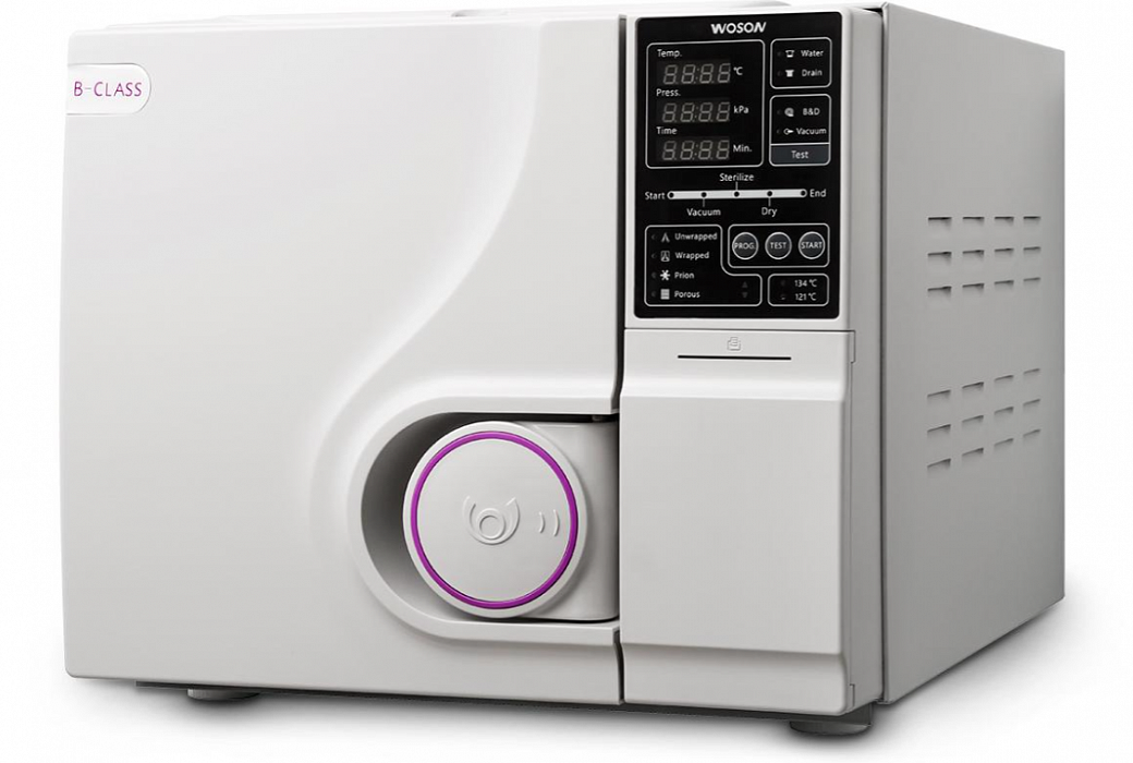 - Стандартный В-класс стерилизации с трехкратным вакуумированием и сушкой, остаточная температура простерилизованного инструмента менее 0,2%