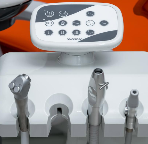 Специально для полноценной работы ассистента установка WOD 730 CART оборудована многофункциональным блоком, который рассчитан на 4 инструмента. На блоке размещен пистолет для воды и воздуха, слюноотсос и другие инструменты, которые позволят ассистенту значительно облегчить работу стоматолога.