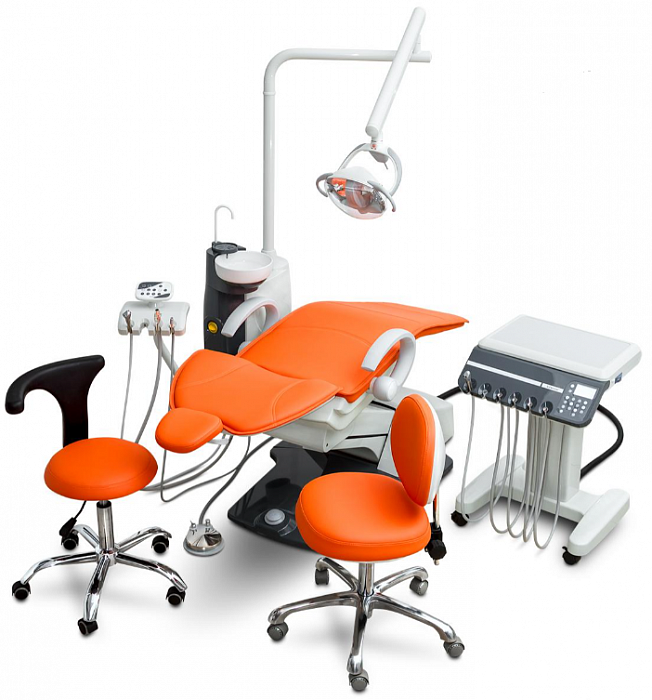 Для качественной работы и высокой мобильности в комплекте с установкой идут стул врача и стул ассистента. Оба предмета имеют надежный металлический каркас на прорезиненных колесиках, способных выдерживать большой вес. Обшивка стульев отличается долговечностью.