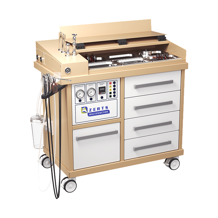 Рабочее место ЛОР врача, в котором объединено различное лечебное и диагностическое оборудование, функциональные модули и поверхности для хранения инструментария и расходных материалов