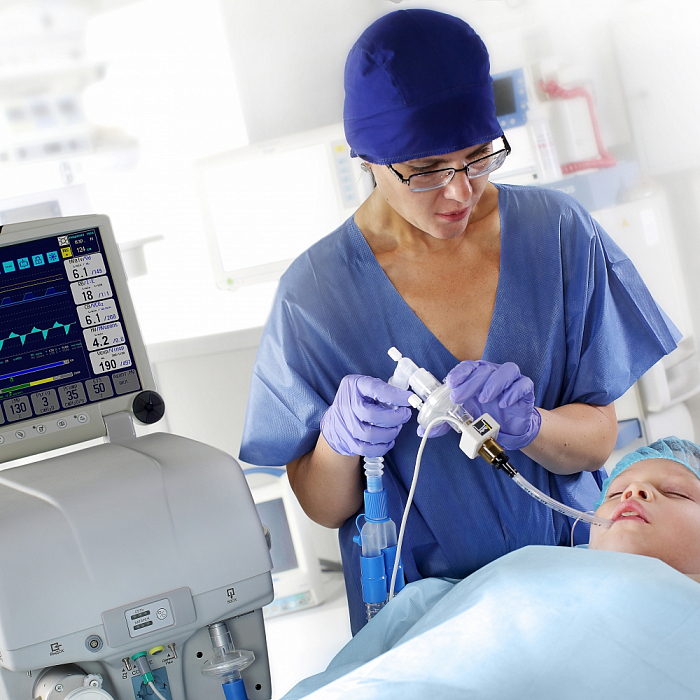 Аппарат для проведения управляемой и вспомогательной искусственной вентиляции легких у всех групп пациентов, с непрерывным мониторингом газообмена и оценкой метаболизма, в отделениях реанимации, хирургии, интенсивной терапии, а также при транспортировке по клинике.