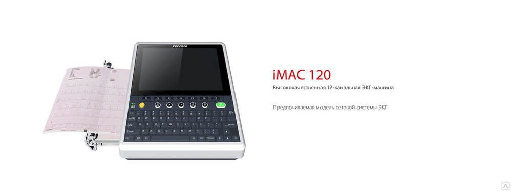 - Электрокардиограф Zoncare IMAC-120 — современный портативный 12-канальный прибор с большим сенсорным дисплеем и полной клавиатурой